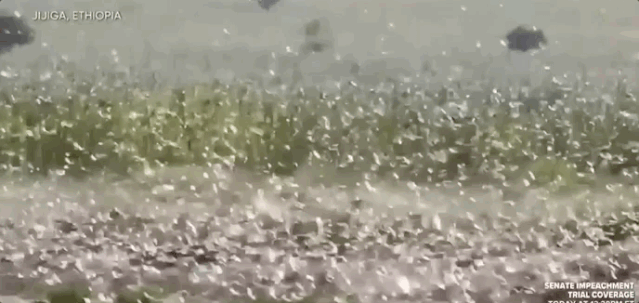 它们已经穿越印度和巴基斯坦,弄得人心惶惶。 就在本月或有第二轮蝗灾,约是第一轮蝗灾的20倍。 目前蝗灾不仅涵盖了东非、印度、巴基斯坦、中亚等国家和地区,已在阿根廷和巴西发生! 蝗虫有多可怕? 它们呼啸而来,每个种群含数亿只成虫,每天可飞行90英里以上。